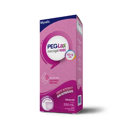 PEG-Lax (macrogol 4000) é um laxante osmótico seguro e eficaz, que promove o amolecimento das fezes, indicado para constipação intestinal. É o único produto do mercado com a molécula macrogol 4000, e o único macrogol em solução oral, trazendo inovação e comodidade dentro da marca que já é a mais prescrita entre os pediatras, agora com sabor morango, para maior adesão do público pediátrico.