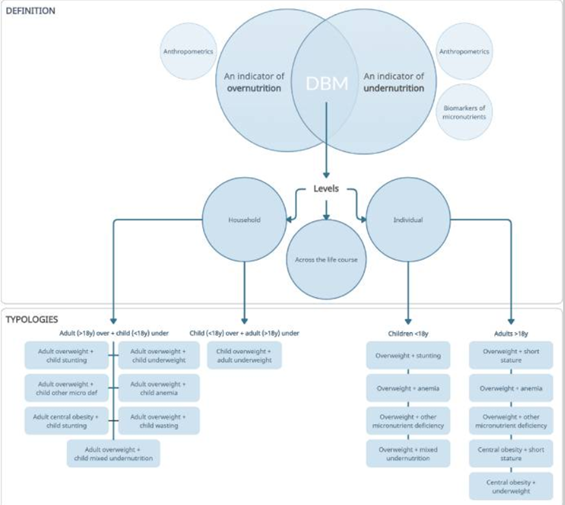 A Dupla Carga da Desnutrição (DBM) é definida como a coexistência de desnutrição e sobrepeso/obesidade no mesmo contexto populacional, familiar ou individual. Embora esteja descrita há mais de 20 anos, ainda é considerada um conceito relativamente recente, com número limitado de estudos publicados¹.