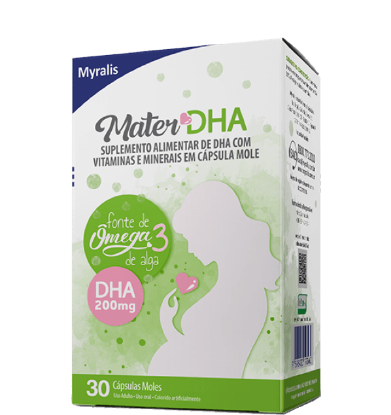 Mater DHA é um suplemento alimentar vitamínico e mineral em cápsulas moles, fonte de Omêga 3, destinado à adultos, gestantes e lactantes. INGREDIENTES  OUTRAS INFORMAÇÕES.
